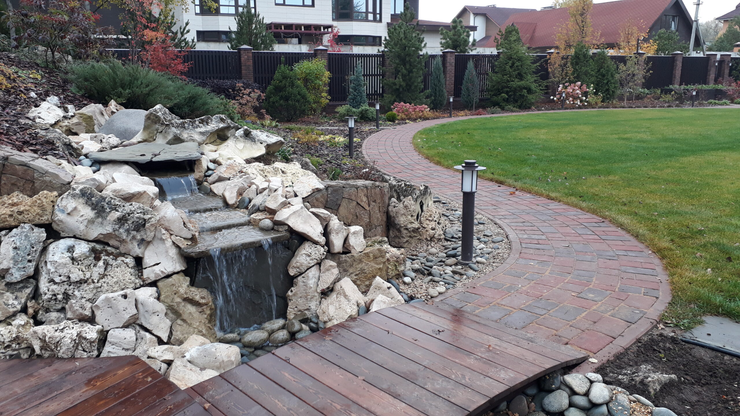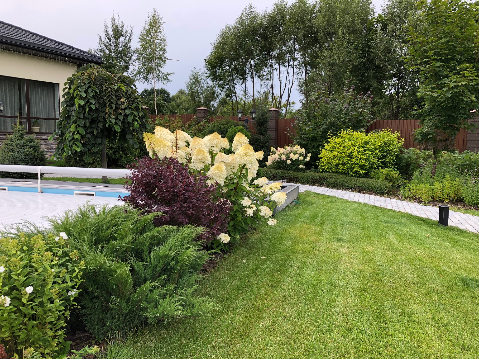 Ландшафтный дизайн участка — это благоустройство сада с интересным художественным замыслом, где особую красоту создают цветники и древесно-кустарниковые группы всесезонной декоративности. Освоение участка желательно начинать с благоустройства территории: создать грамотную планировку участка, провести работу с рельефом и существующим грунтом. Затем следует устройство дорожек и площадок, при необходимости подпорных стенок и систем дренирования территории. В зависимости от проекта на территории создаются специализированные объекты (объекты ландшафтного дизайна),к которым относятся теплицы и площадки отдыха, детские игровые комплексы и павильоны для барбекю, бассейны и декоративные водоемы. Далее следуют работы по монтажу инженерных коммуникаций: системы полива и освещения.